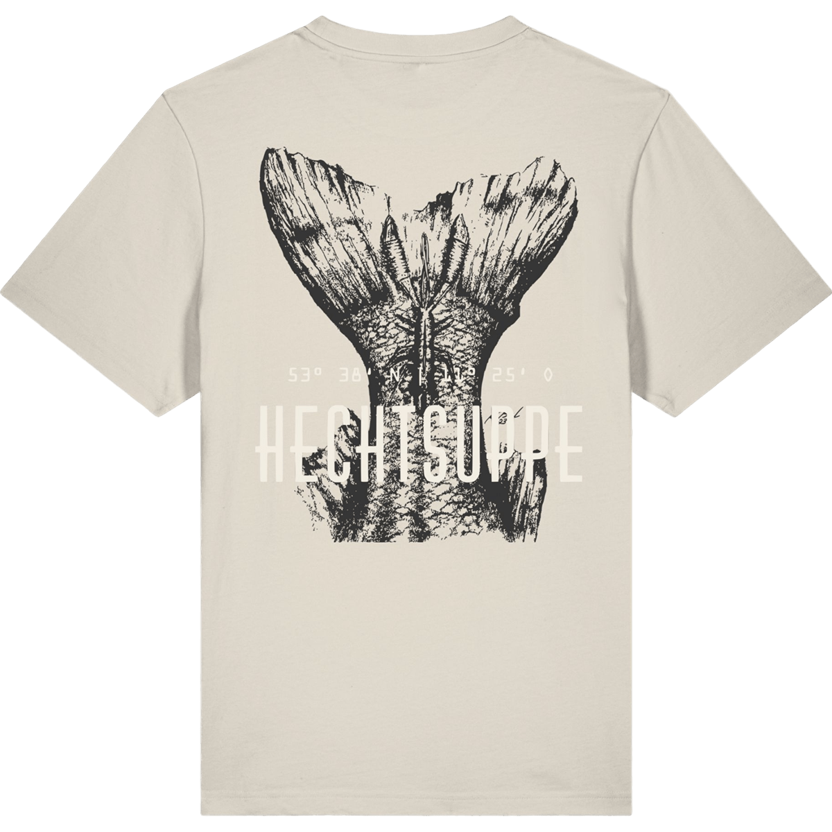 Der Gib Flosse Hoodie hat jetzt einen kleinen Bruder – das Gib Flosse T-Shirt. Klare Designs, keine Anglerklischees. Mit der handgezeichneten Barschflosse auf dem Rücken setzt du ein Statement, das Understatement bleibt. Der dezente Hechtsuppe-Print auf der Brust macht das Shirt alltagstauglich, ohne den Bezug zum Wasser zu verlieren.