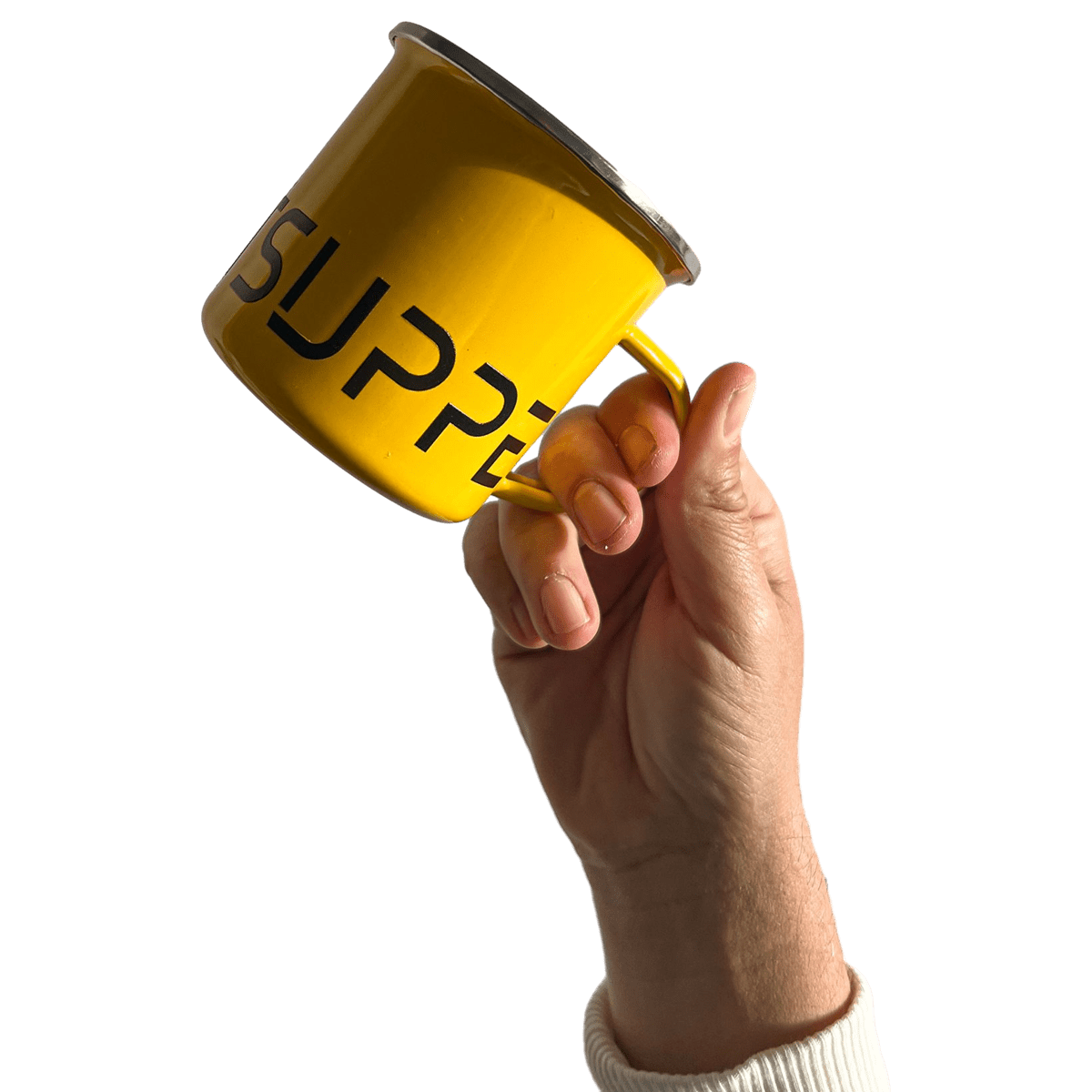 Vintage Emaille-Tasse mit Edelstahlrand. 300 ml Füllmenge. Robust, leicht & stilvoll – für Kaffee, Tee oder Glühwein am Wasser, beim Campen oder zu Hause. In leuchtendem Gelb.