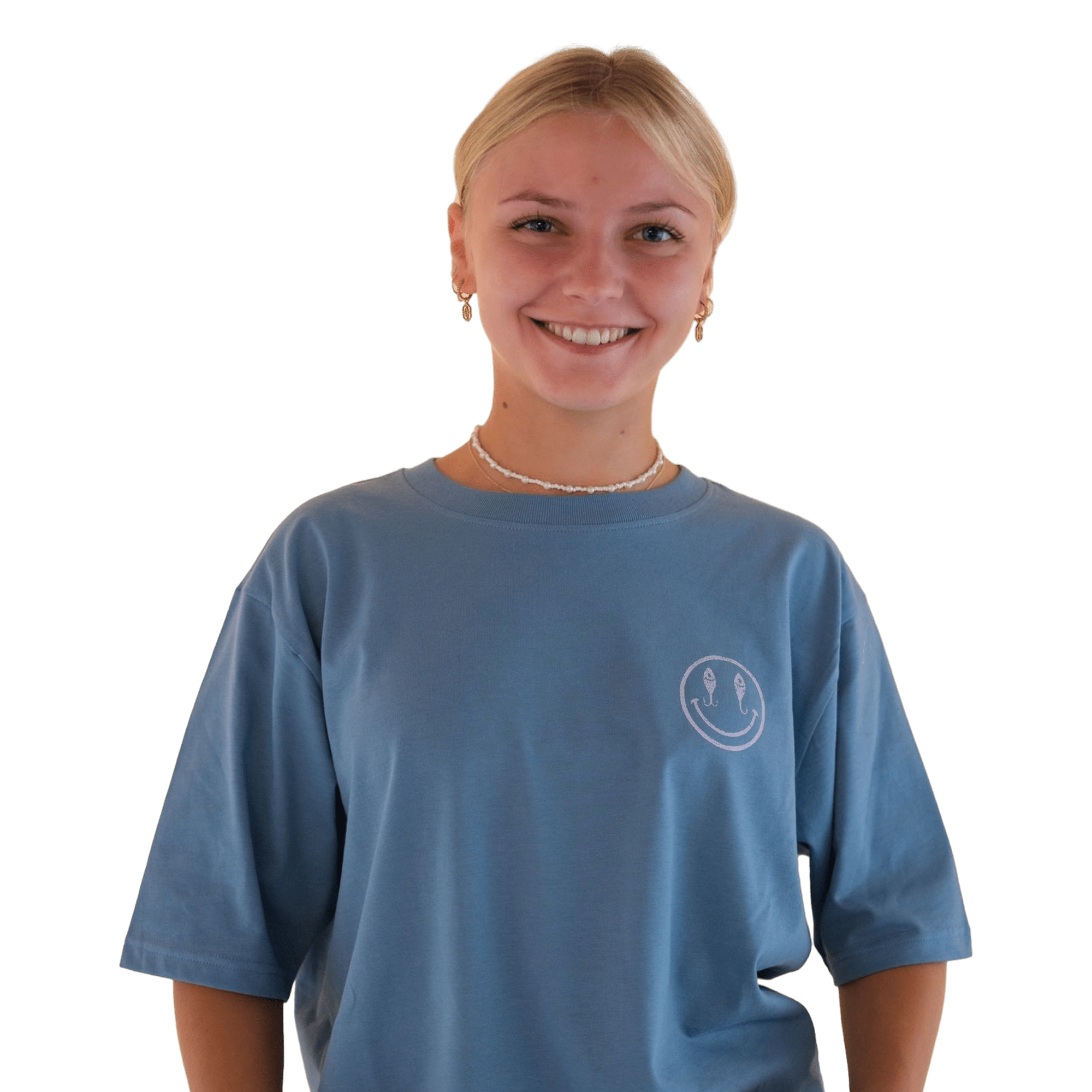 Material: 100% Bio-Baumwolle | Gewicht: 185 GSM | Farbe: Blue Dusk | Passform: Oversized | Veredelt in Norddeutschland